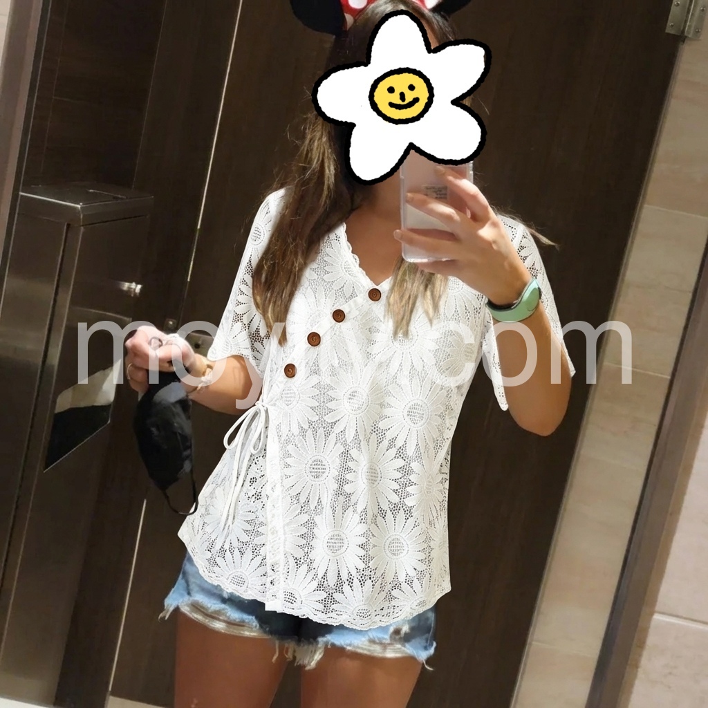 This white lace top is absolutely perfect for summer! The daisy pattern is so cute and it is surprisingly soft. I wore it with jeans just like the picture and got so many compliments. True to size.