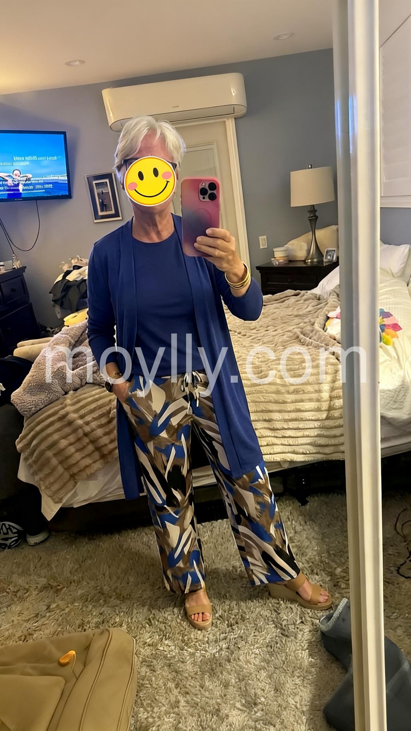 Absolutely love this set! The blue color is vibrant and just like the picture. The pants are incredibly comfortable and flowy. Perfect for my upcoming cruise.
