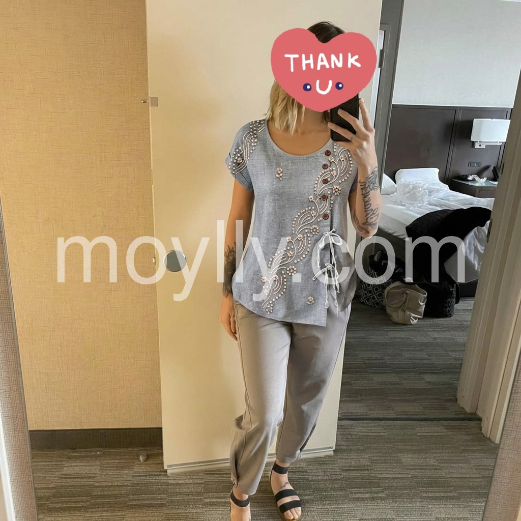 Perfect boho top! The grey color is very versatile. I love the short sleeves and the overall airy feel. I washed it twice already and the embroidery held up perfectly.
