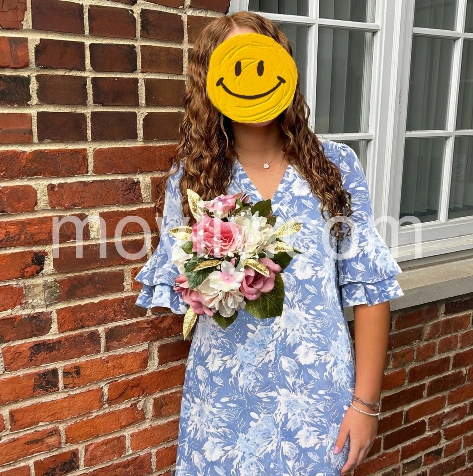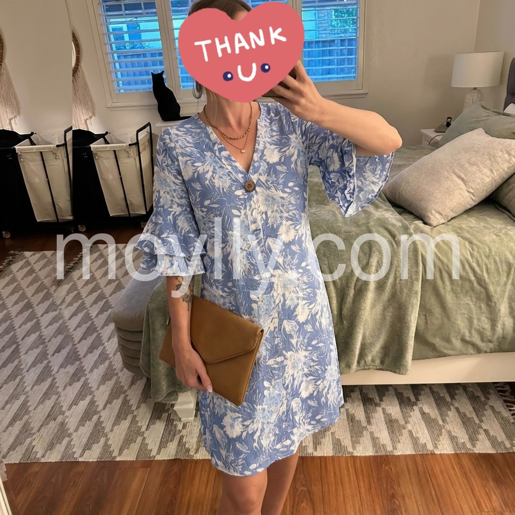 I absolutely love the ruffled bell sleeves on this dress! The blue and white floral print is so fresh and perfect for spring.