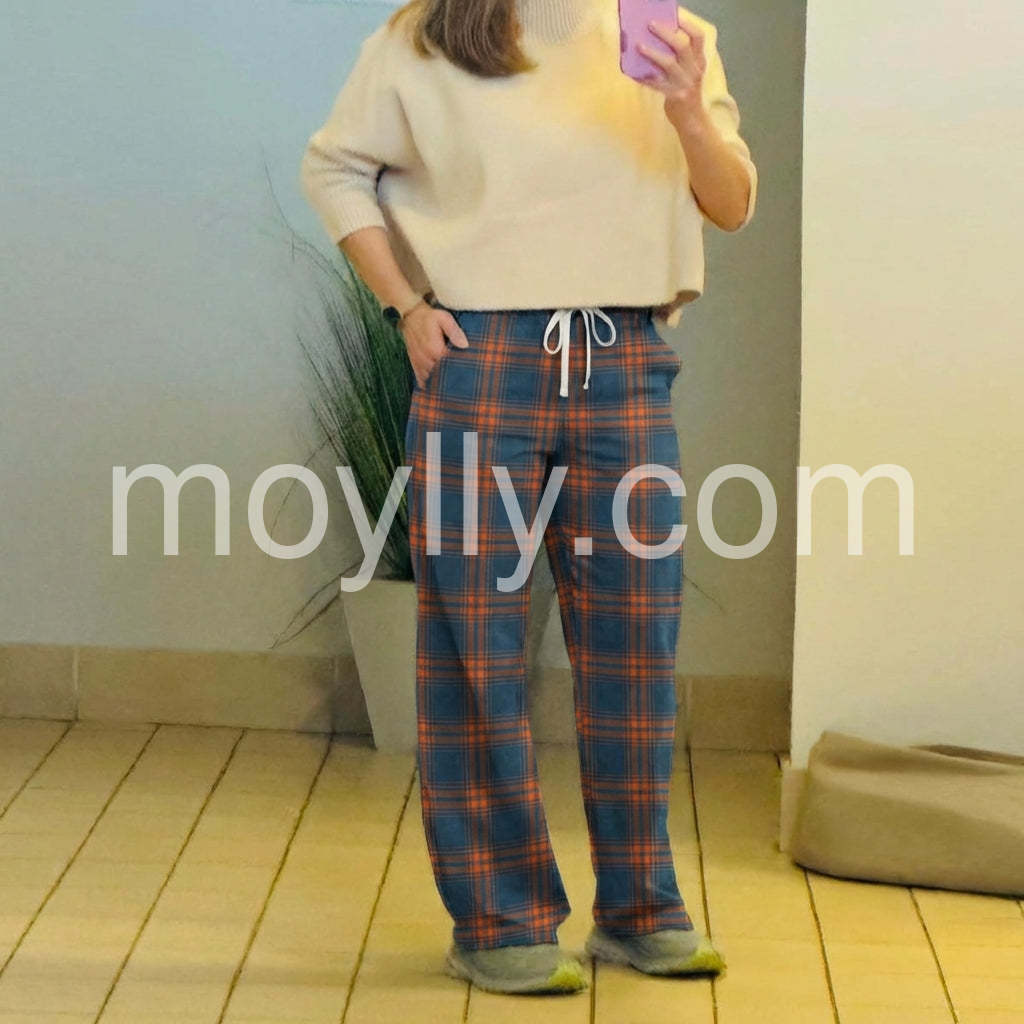 Loved the look you pulled off with those blue and orange plaid pants. They pair so well with the simple sandals, giving off a relaxed, stylish vibe perfect for a casual day out.
