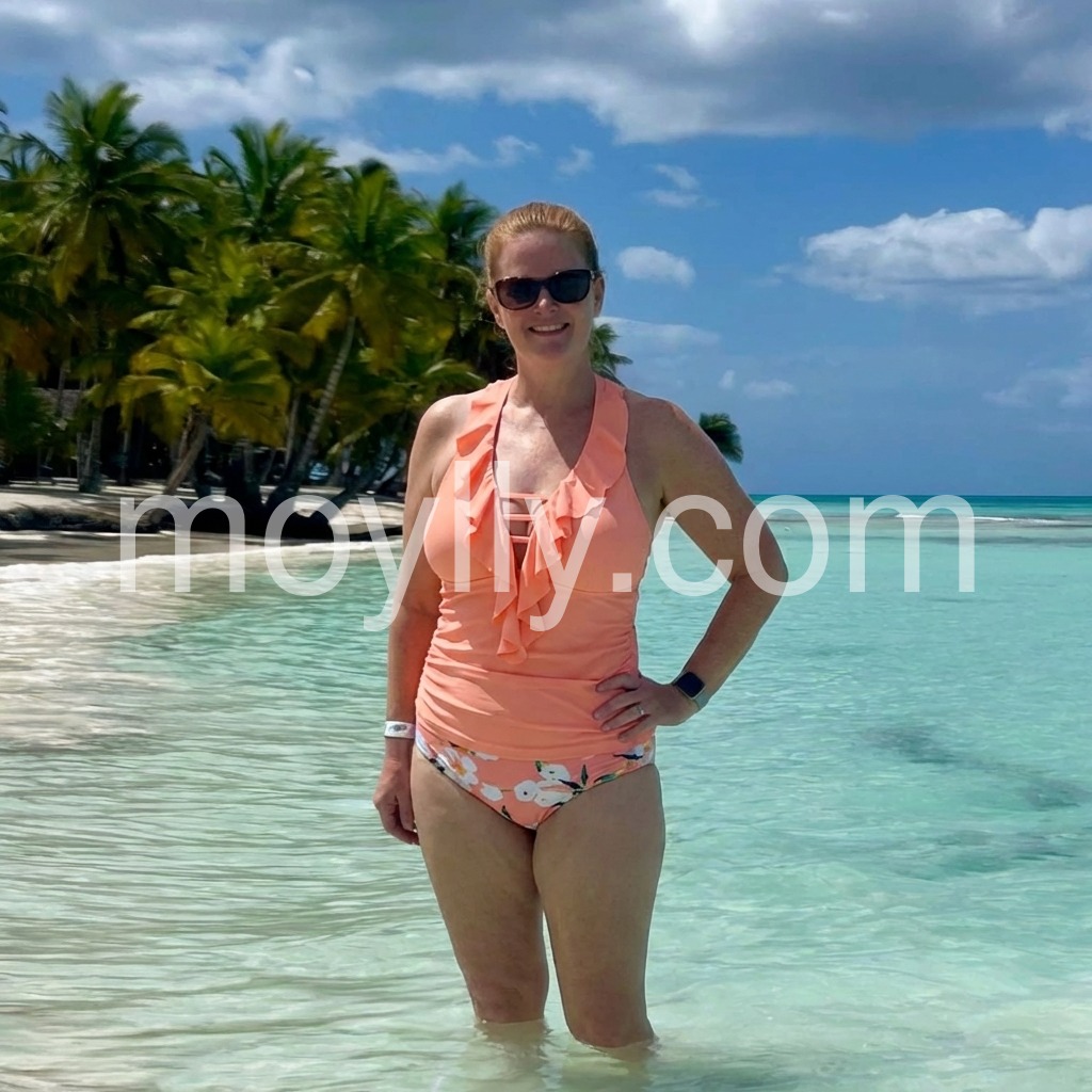 I needed a tankini as my mom swimsuit this summer and this one is a fantastic option. The high waist bottom provides just the right amount of coverage without feeling or looking frumpy. The thickness of the fabric feels substantial without being heavy and gives a secure, high-quality feel. I am really impressed with the quality of the suit. The fabric feels sturdy and well made and I think it will last for many summers to come. The color is vibrant and rich and I cannot imagine it fading even after multiple wears and washes. This tankini strikes the perfect balance of comfort, style, and practicality.