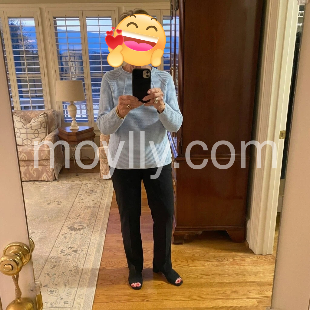 I’m obsessed with this baby blue sweater! The ribbed texture adds such a nice subtle detail and the relaxed fit is so comfortable for all-day wear. It’s not scratchy at all and washes well without losing its shape. I’ve worn it to work and weekend brunch and it’s become my most versatile piece.
