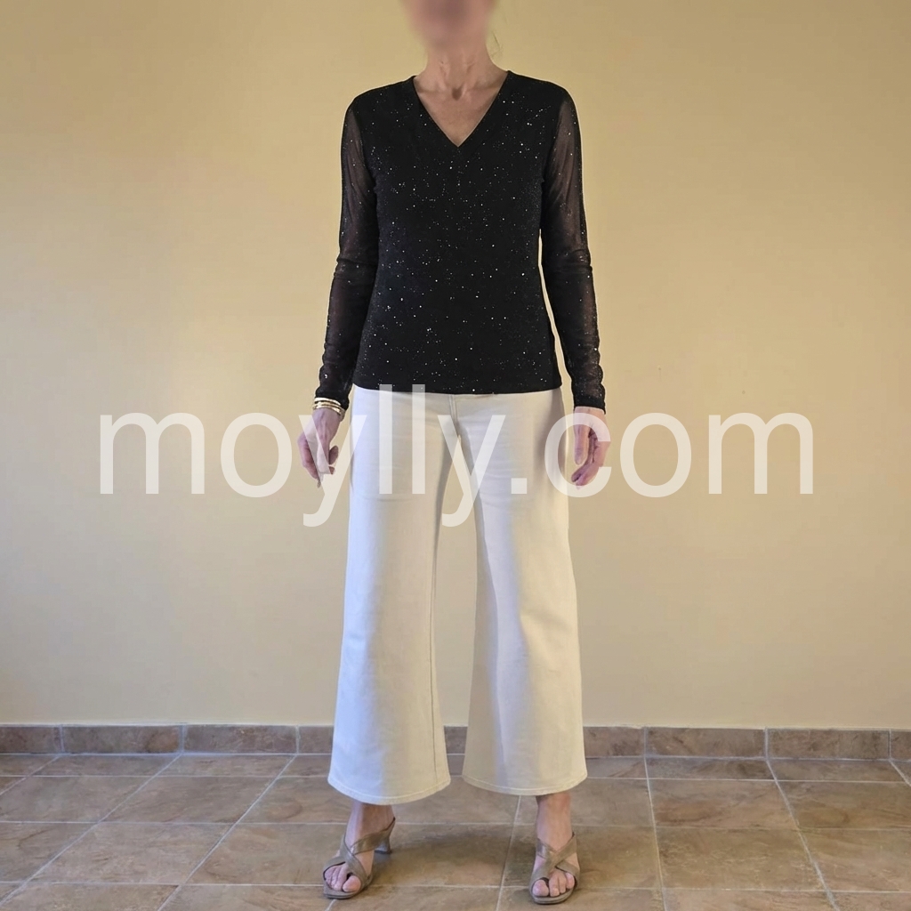 Black Sparkle Sequin V-Neck Long Sleeve Top