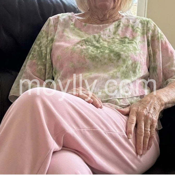 I bought this for my granddaughter's spring wedding and it was absolutely perfect. The pink and green watercolor top is so elegant, and the wide-leg pants are incredibly comfortable. I received compliments all day long.