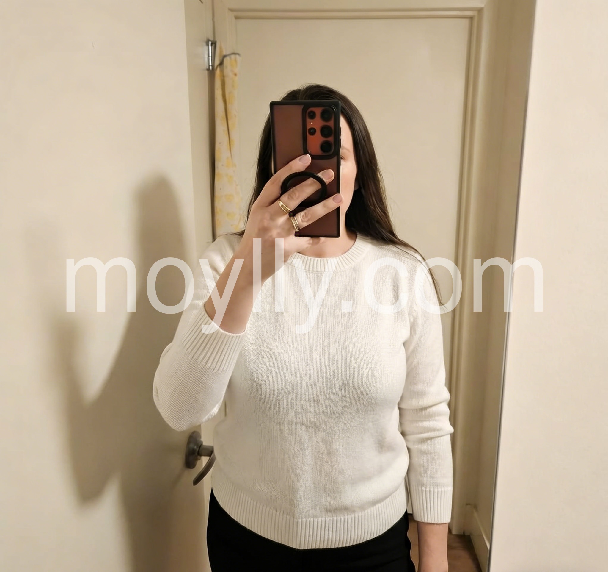 This soft white sweater features a classic round neck and ribbed knit design, offering both comfort and refined texture. Its plain, versatile style makes it an ideal layering piece for various outfits, while the quality knit ensures durability and a flattering fit. Perfect for maintaining warmth without bulk, it delivers understated elegance suitable for professional and casual settings alike.