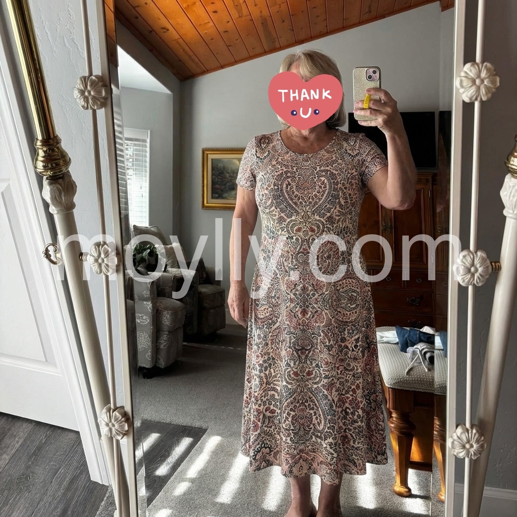 I received so many compliments when I wore this to a family brunch. The intricate paisley design is very unique. Plus, the short sleeves offer great coverage.