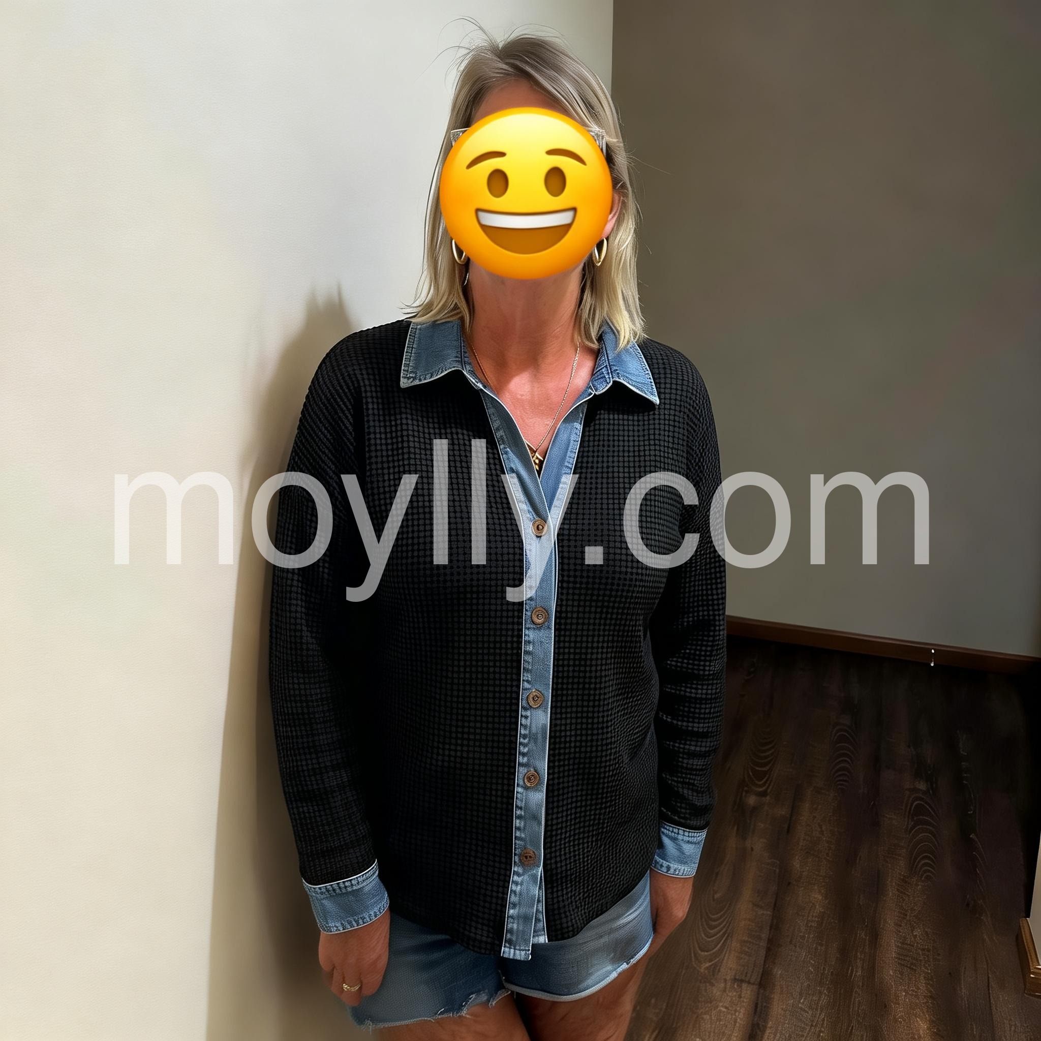 This top is amazing! The material is fantastic, it's thick, and the denim details on the collar and cuffs give it a special touch. Highly recommended!