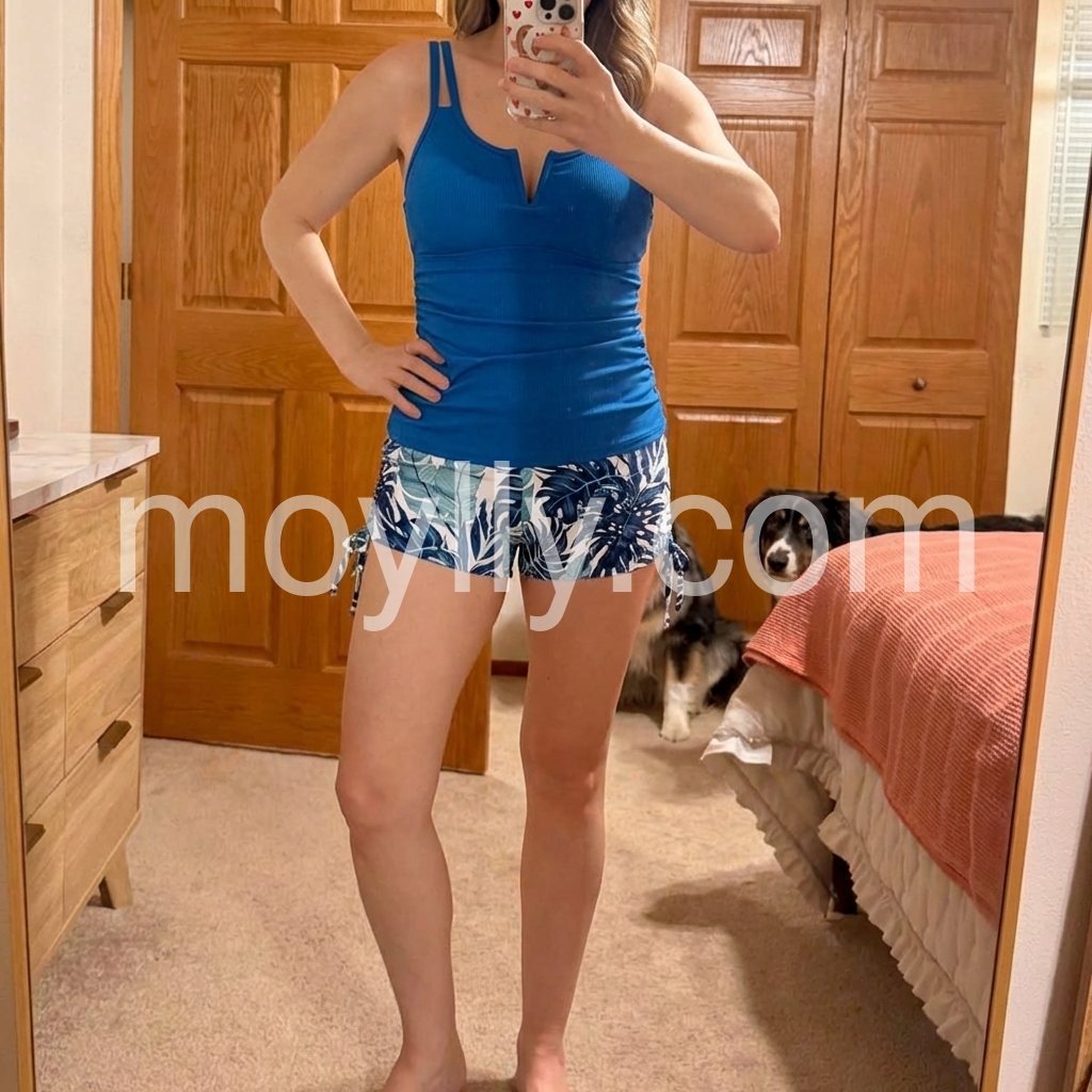 I absolutely love this swim set! The blue tank is super flattering and fits comfortably without feeling too tight. I wore it at the beach for hours and it still looked great. The drawstring shorts are a perfect match—light, stylish, and easy to move in. Overall, it feels like a high-quality summer outfit.