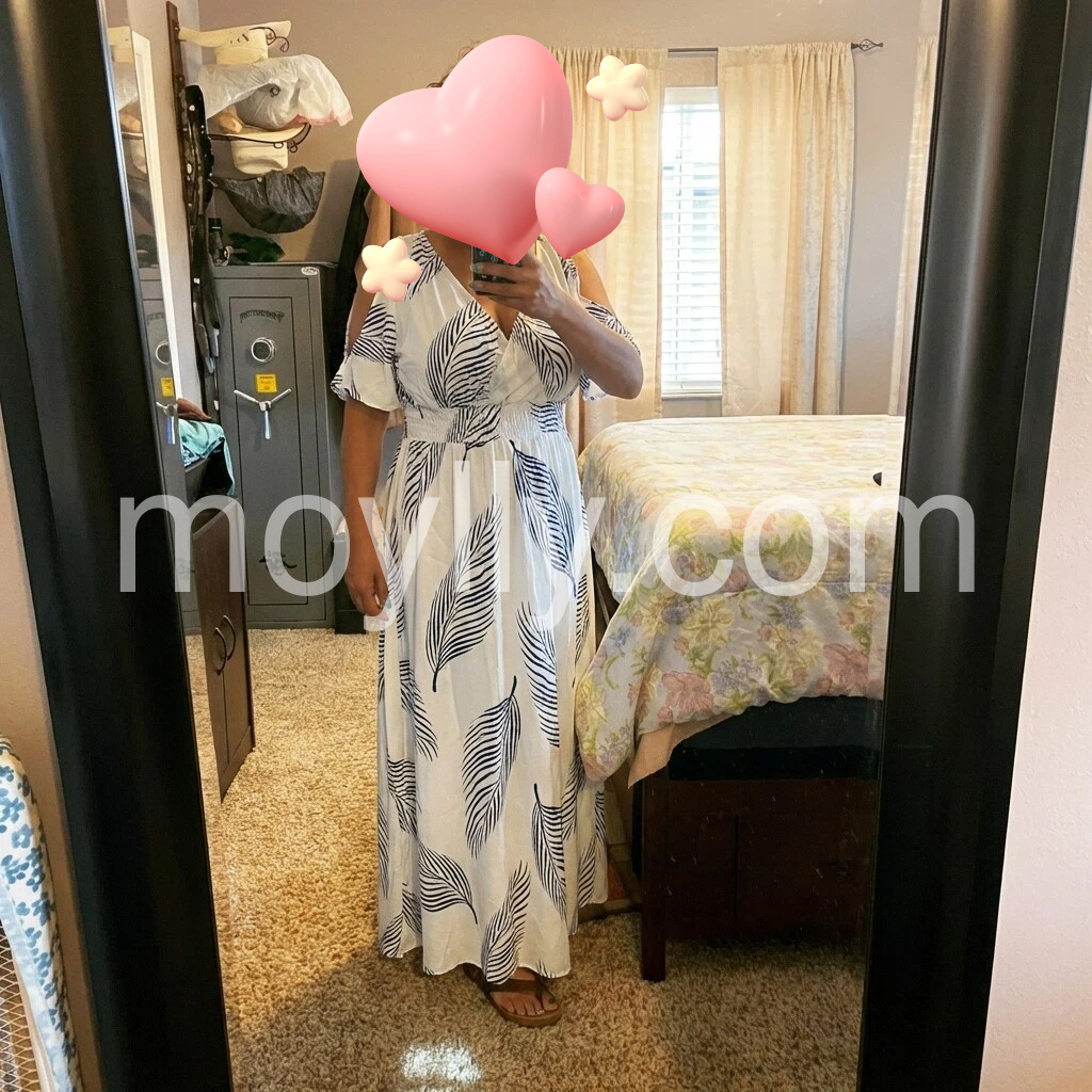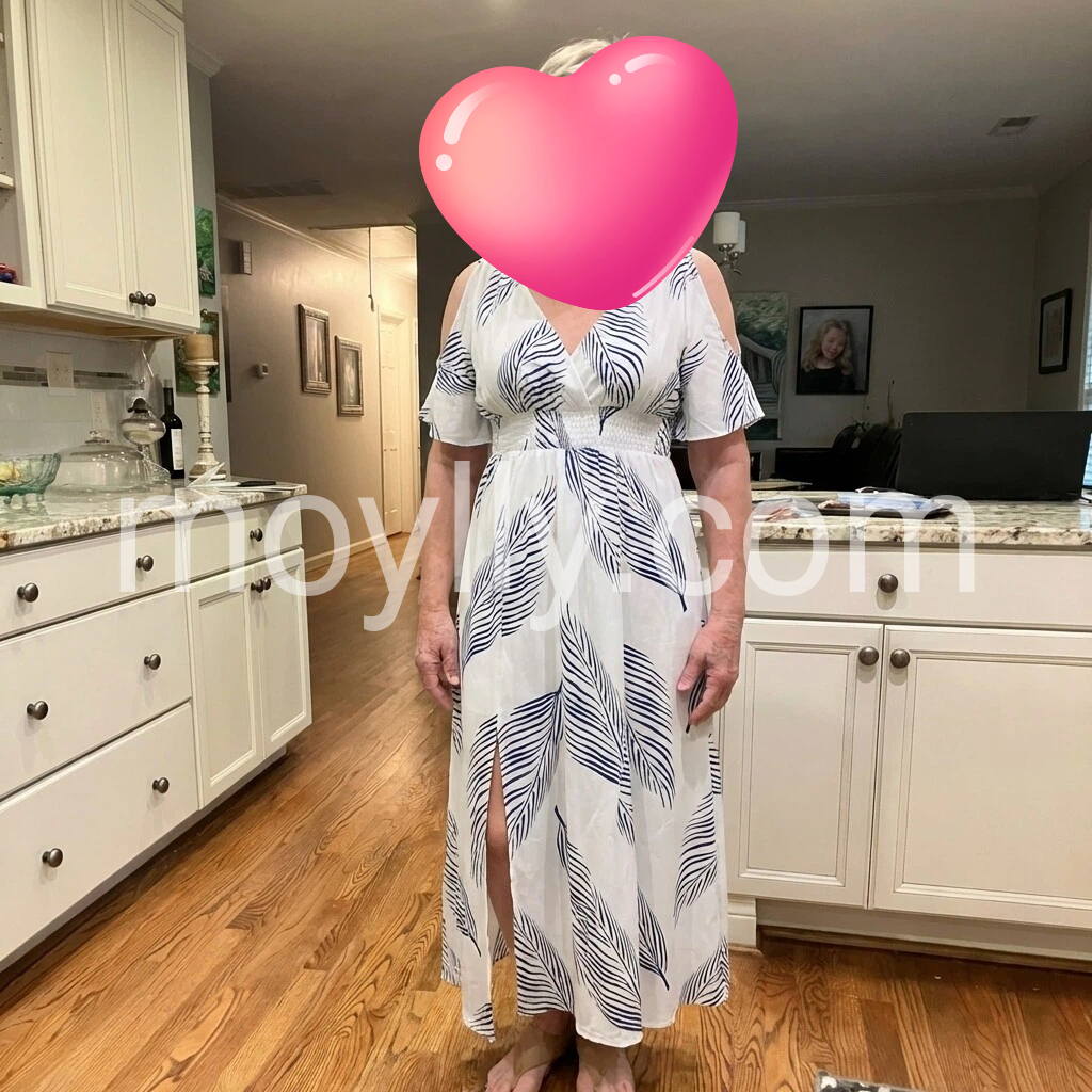 Stunning leaf-print maxi dress—lightweight, flowy, and effortlessly elegant. The white-and-blue color palette is fresh and versatile, while the flattering A-line cut and adjustable tie waist enhance the silhouette. Perfect for summer days or relaxed evenings. Fabric feels soft and breathable, and the fit runs true to size. Shipped quickly and beautifully packaged. A standout piece—I love it!