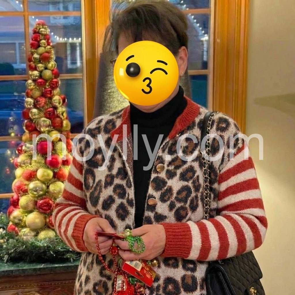 This jacket is adorable. The button-up front makes it easy to wear, and the leopard pattern with the striped sleeves gives it a unique look. It’s warm and cozy, and it fits nicely without feeling bulky. Great quality and exactly like the photos.