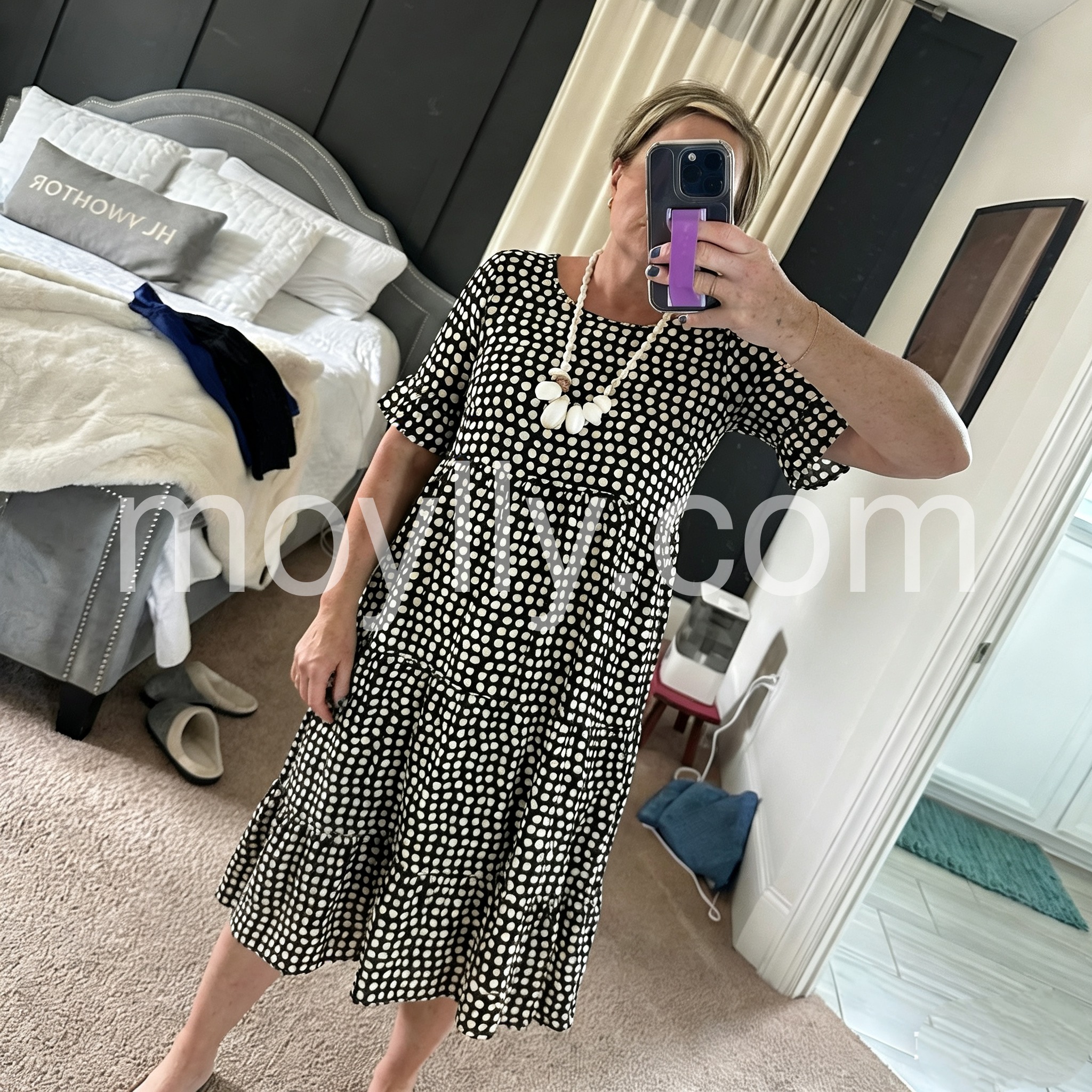 This is my new go-to dress for church and Sunday brunch. It is modest, elegant, and the black and white polka dots never go out of style. Highly recommend!
