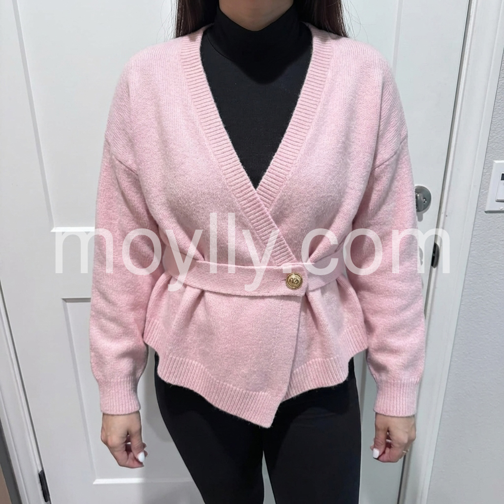 This cardigan is made with high-quality material and features a sweet pink color, long sleeves, and a plain design. Perfect for any occasion, it provides comfort and style. Made to last, this cardigan is sure to become a staple in your wardrobe.