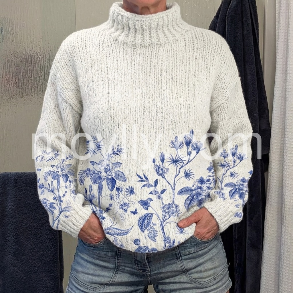 This sweater is so cute on! I love the flower details and how it feels on. It's soft and has stretch to it. It washes up great and keeps it shape. It's true to size and and pilling. It will keep you pretty warm as well - not thin and not see through. It's a great stylish sweater to have in the collection.