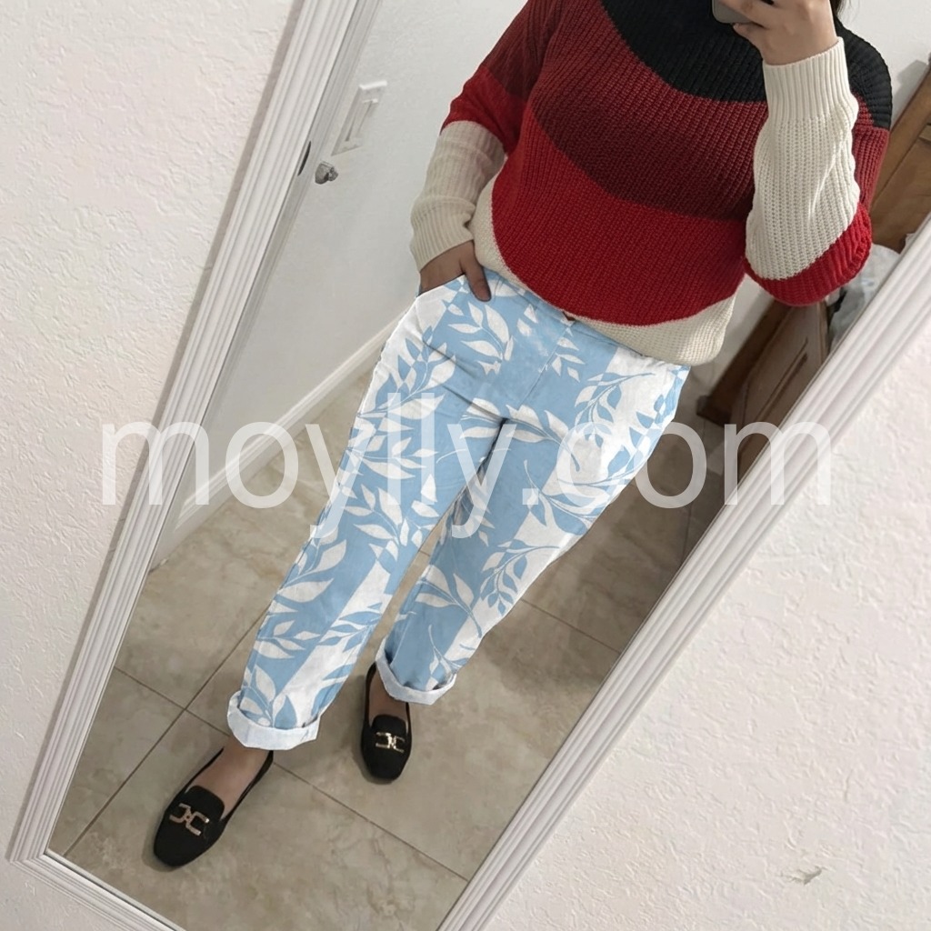 Love the breezy feel of these pants. They are my go-to for hot summer days. The material is soft and the pattern is so cute.