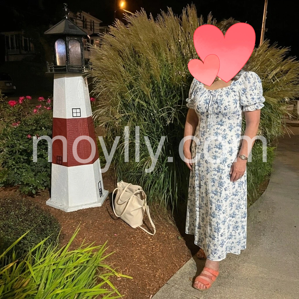 I’m really happy with this dress. The pattern is vibrant and the style feels very feminine and timeless. The puff sleeves and ruched bodice add a nice detail, and the dress flows beautifully when walking. It’s comfortable and not stiff, so it’s easy to wear for outings. It matches the listing photos perfectly and looks adorable in the evening too—definitely a lovely dress.