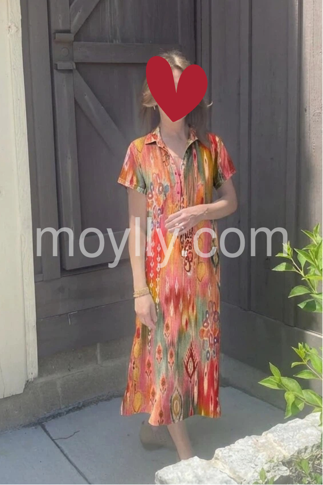 Absolutely love this dress! The colors are just as vibrant as the picture. The best part? It has pockets! It is incredibly comfortable and the linen-like fabric is perfect for hot summer days. Highly recommend!