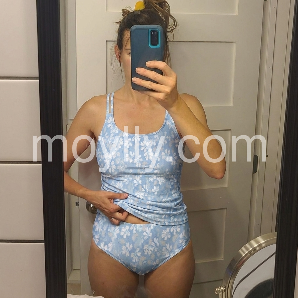 This fits exactly as expected. The colors are so cute together. The top was a great cut. The suit looks exactly like the picture. Colors are vibrant! I felt comfortable with the padding wasn’t overwhelming, but I felt covered.