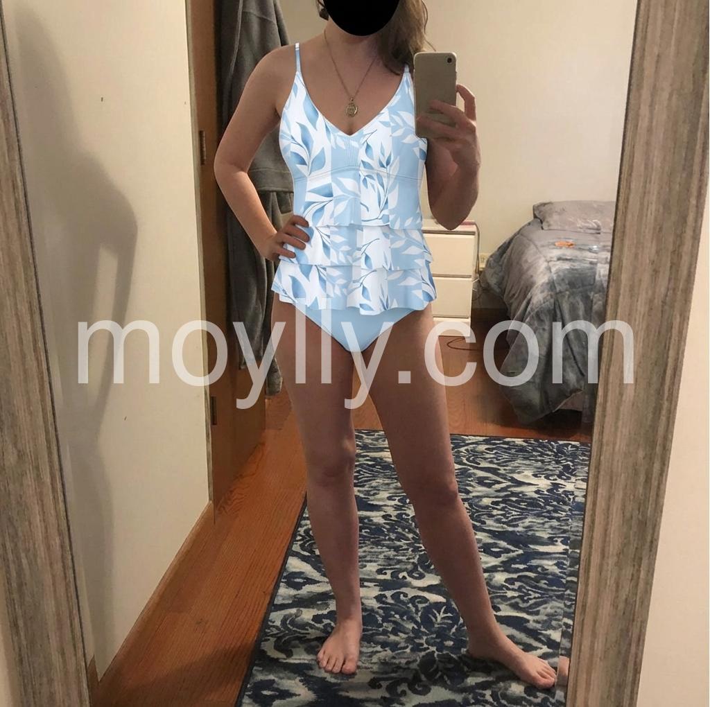 I’m 5’11”, 160#, and normally wear a medium top. I ordered the L. It quickly became my favorite bathing suit, particularly because I have no booty, so the rouching design makes that a little less awkward. 😂