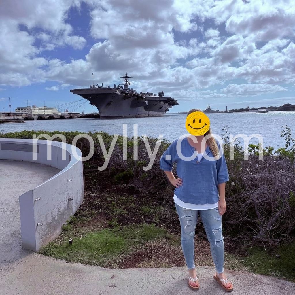 The button details on the V-neck give it a nice touch. Not too low cut, very modest, lightweight, and super comfortable.