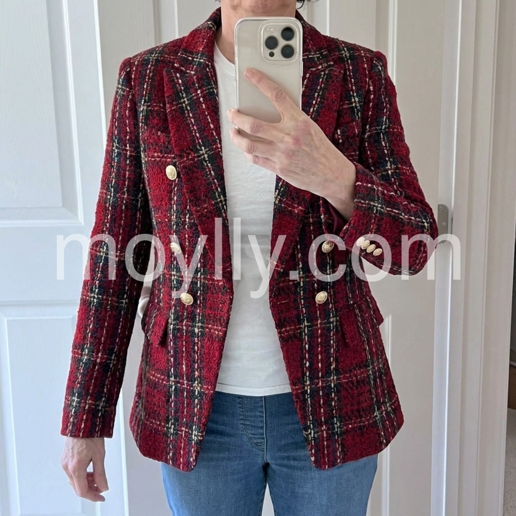 I bought this for a seasonal wardrobe refresh, and it turned out to be a great choice. The burgundy color is stunning, and the plaid design adds a cozy, artsy feel. It’s warm, flattering, and effortlessly stylish.