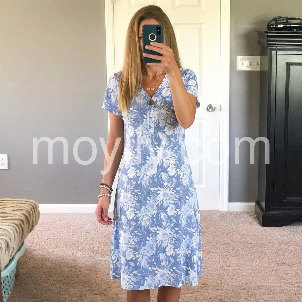 Love this dress! The pattern is cute. Doesn’t cling to your body but not too baggy.