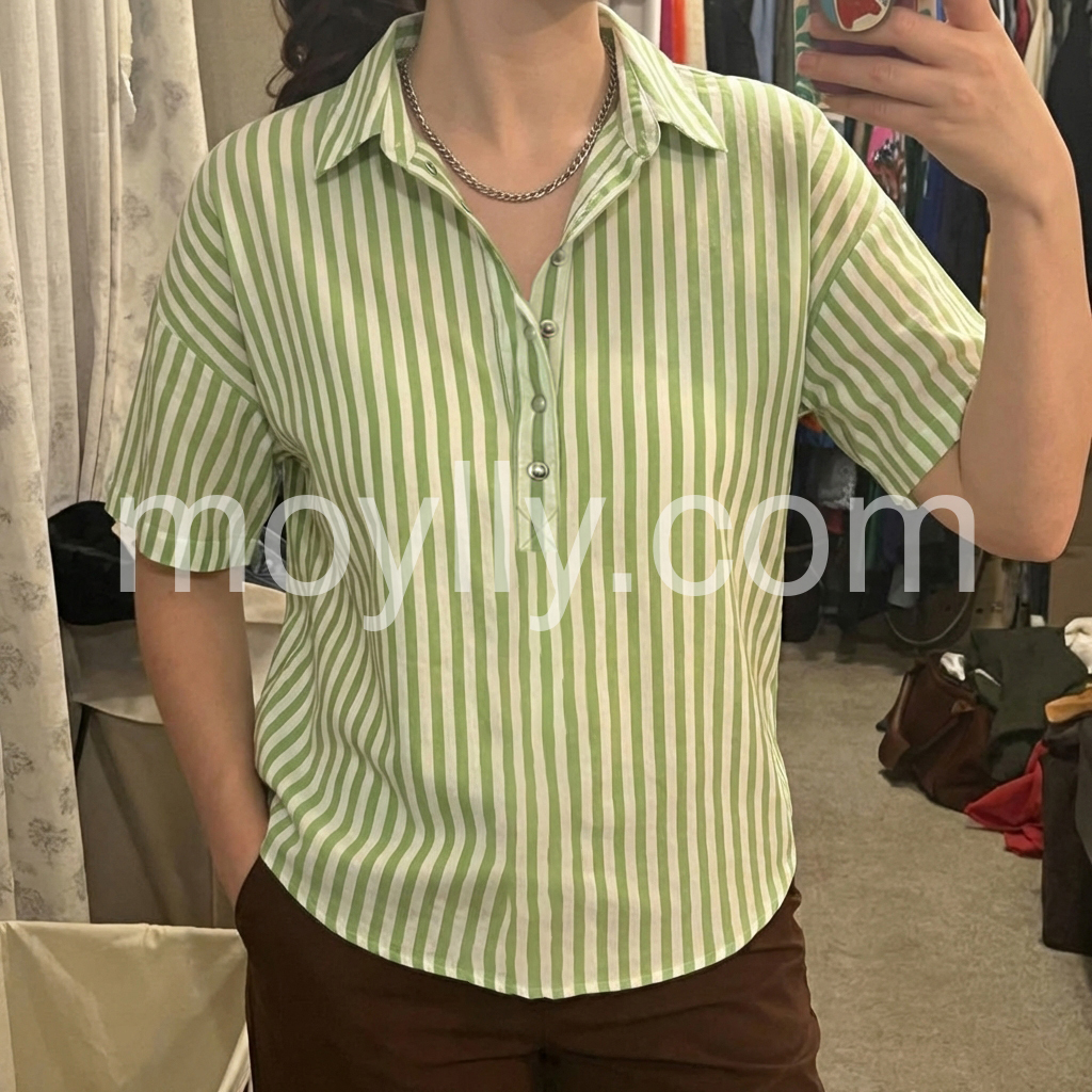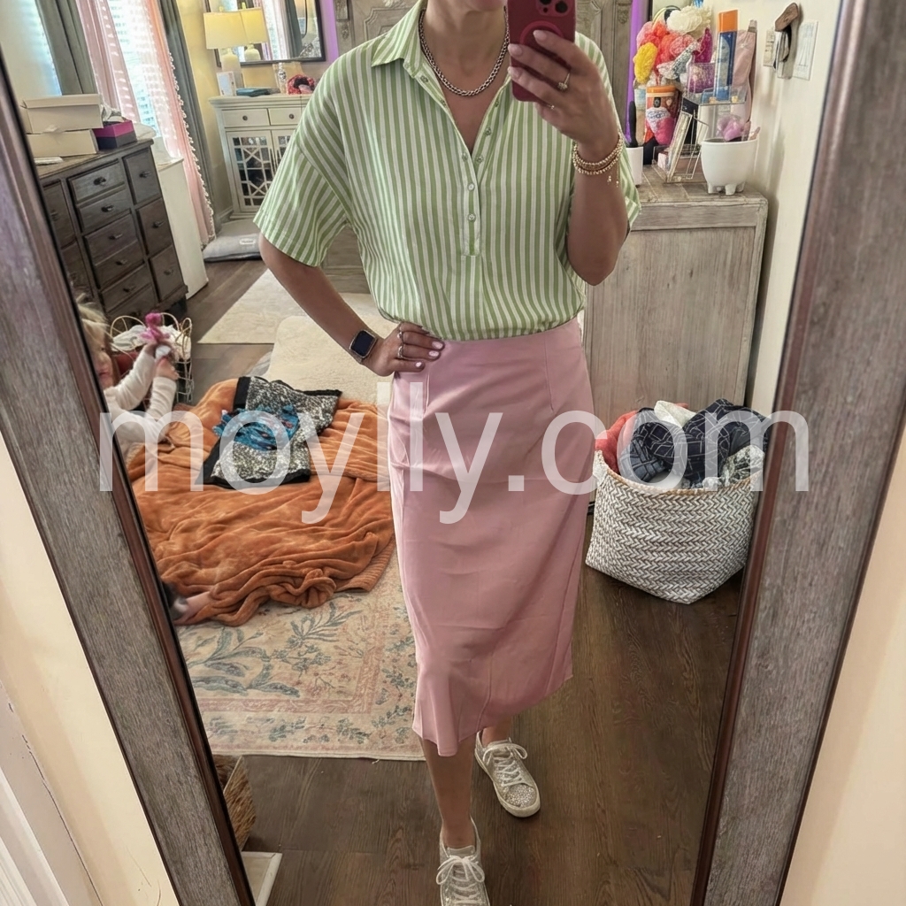 Love this top! The green stripes are so fresh for summer. It is lightweight and very comfortable to wear all day long.