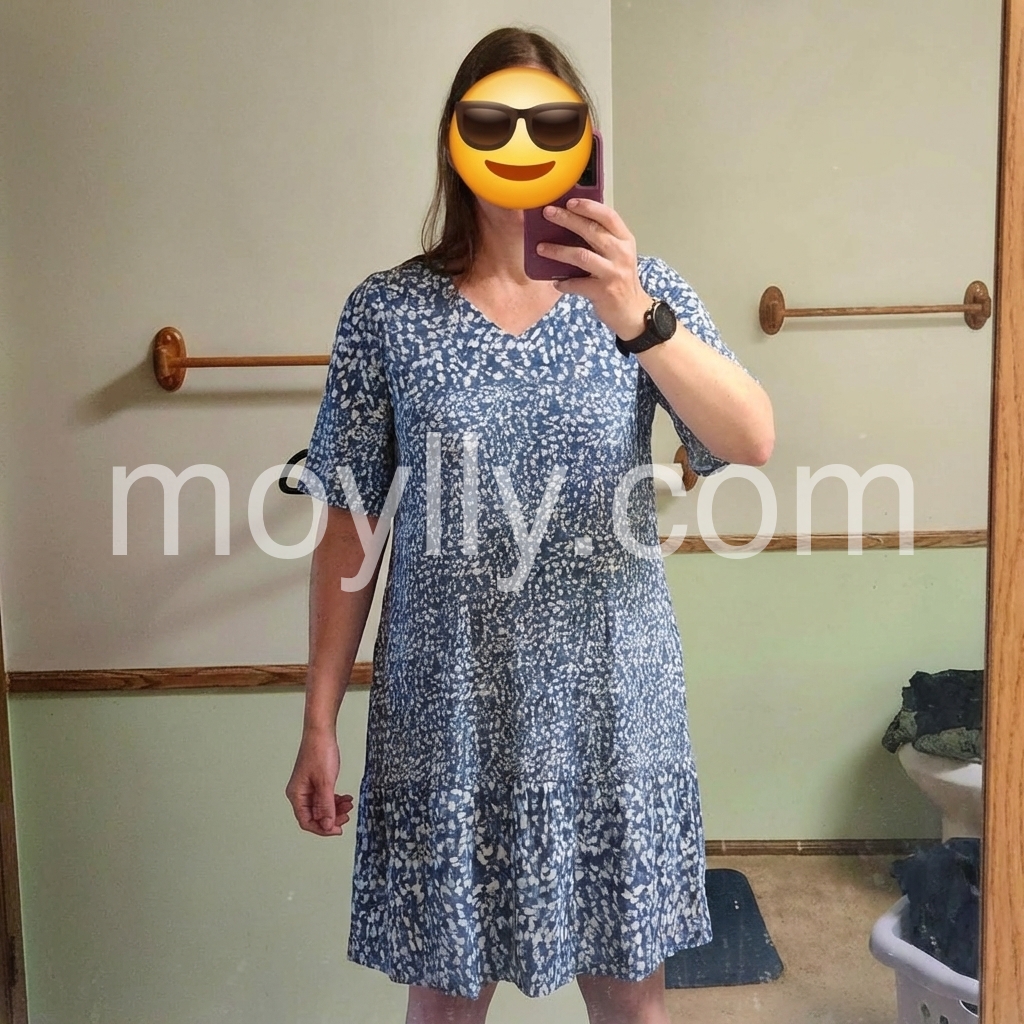 Blue White Floral V-Neck Tiered Shift Dress – Casual Ruffle Sleeve Summer Dress