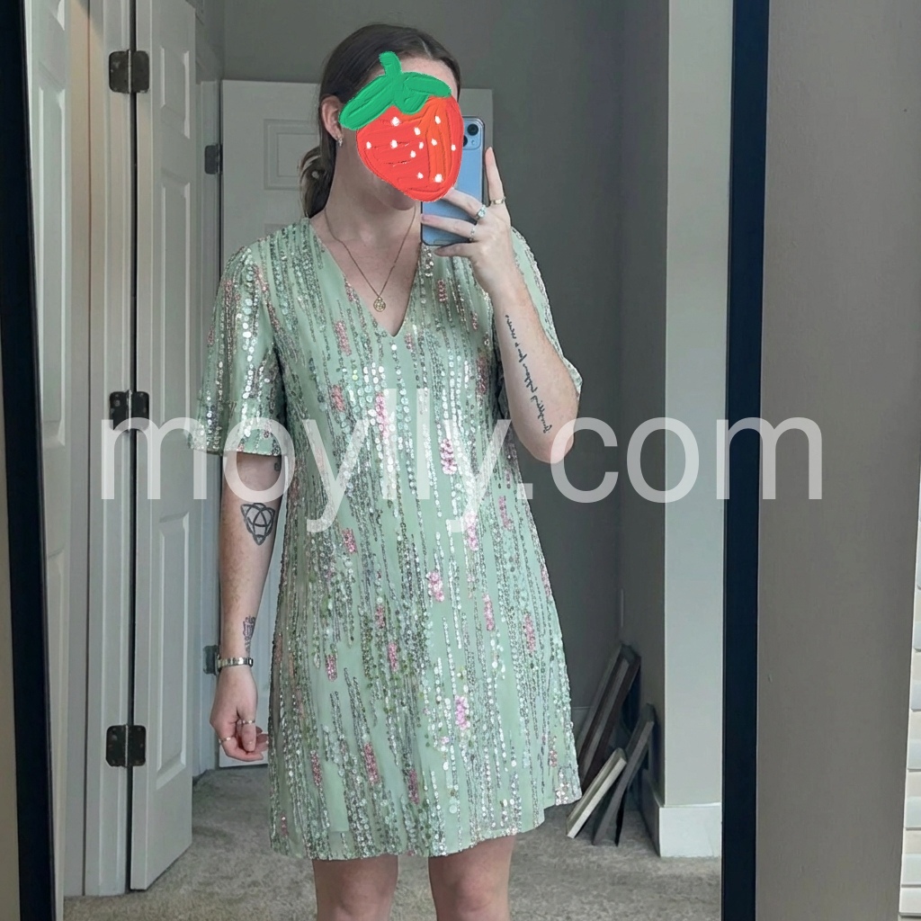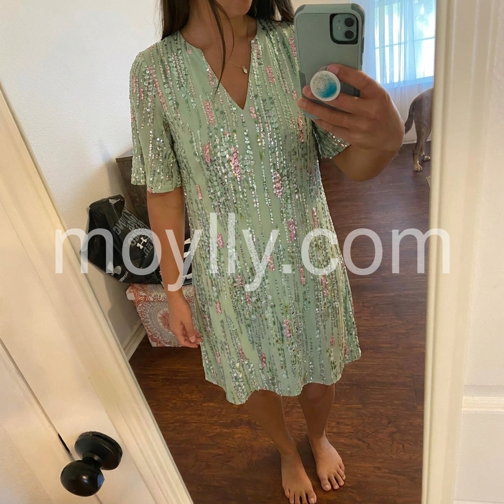 Mint Green V-Neck Shift Dress with Flared Sleeves Casual Party Dress