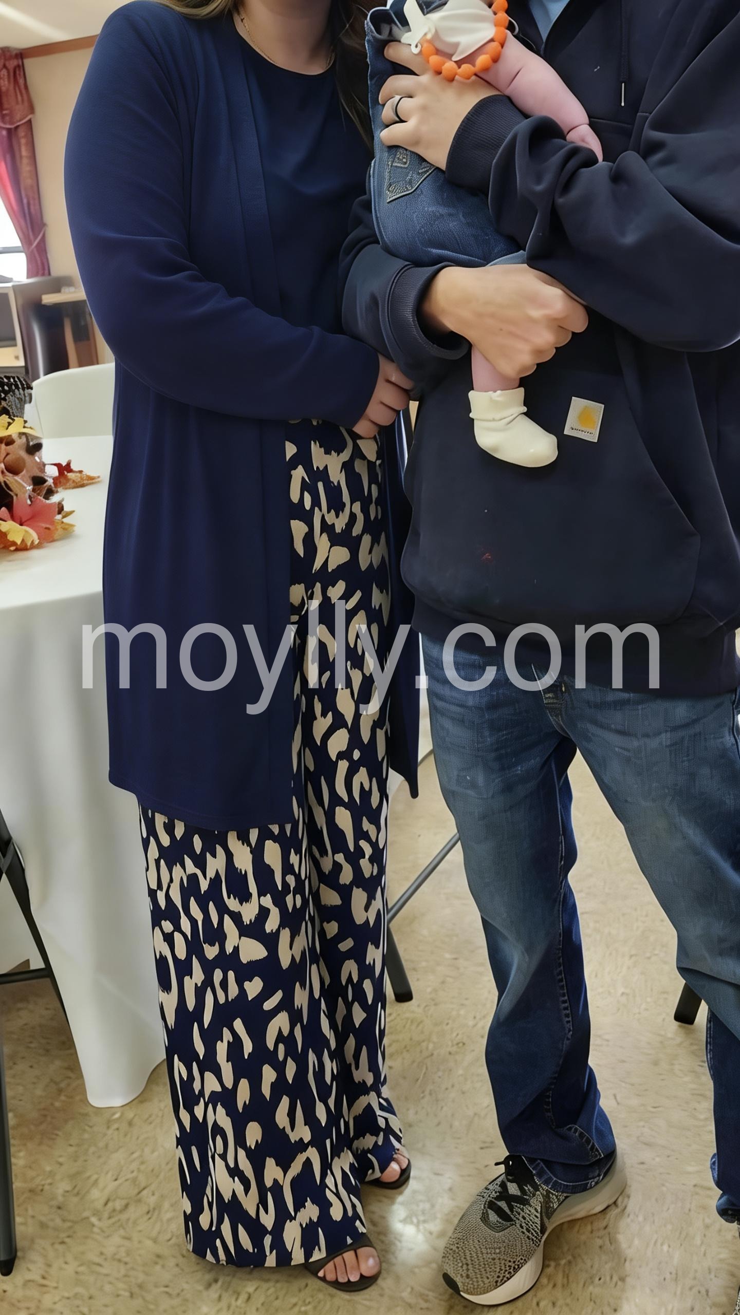 I am absolutely in love with this two piece set! The navy blue color is so rich, and the abstract leopard print on the pants is very trendy. The material is incredibly soft and flowy, making it perfect for a stylish yet comfortable look. Highly recommend!