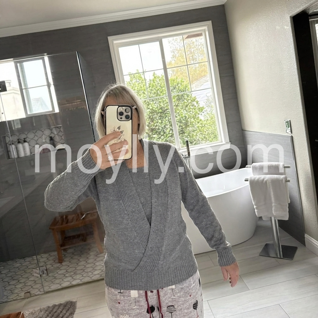 This sweater is very comfortable. Doesn't cling to you. It is a warm sweater. Made very well. Bought another one just waiting for it to come in. I bought a medium fits perfect i am 5'2\" and weigh 136. I washed it on cold water and dried it on medium heat in the dryer and it did not shrink. I also turned it inside out before putting it in washer. Love this sweater.