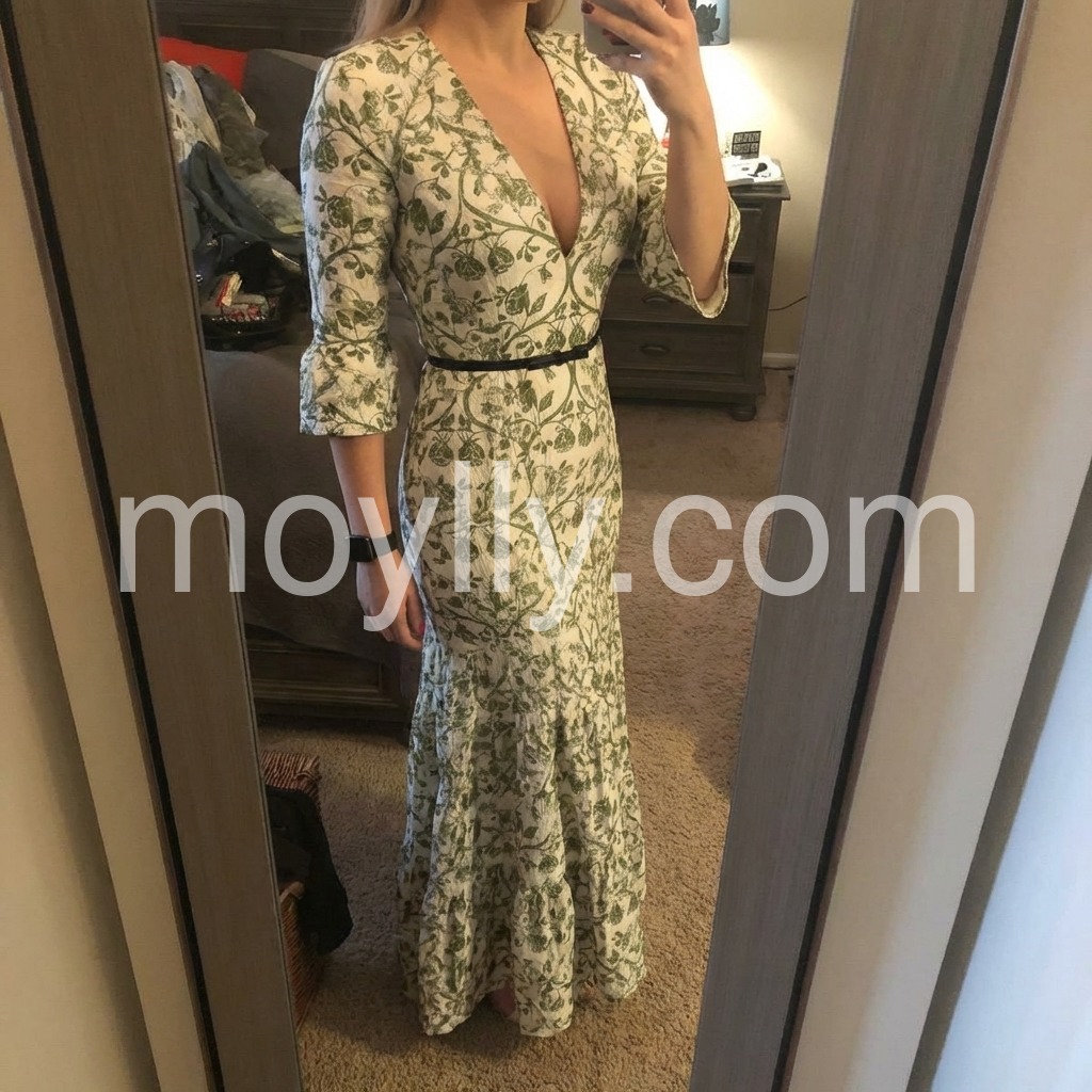 Green V-Neck 3/4 Sleeve Maxi Dress