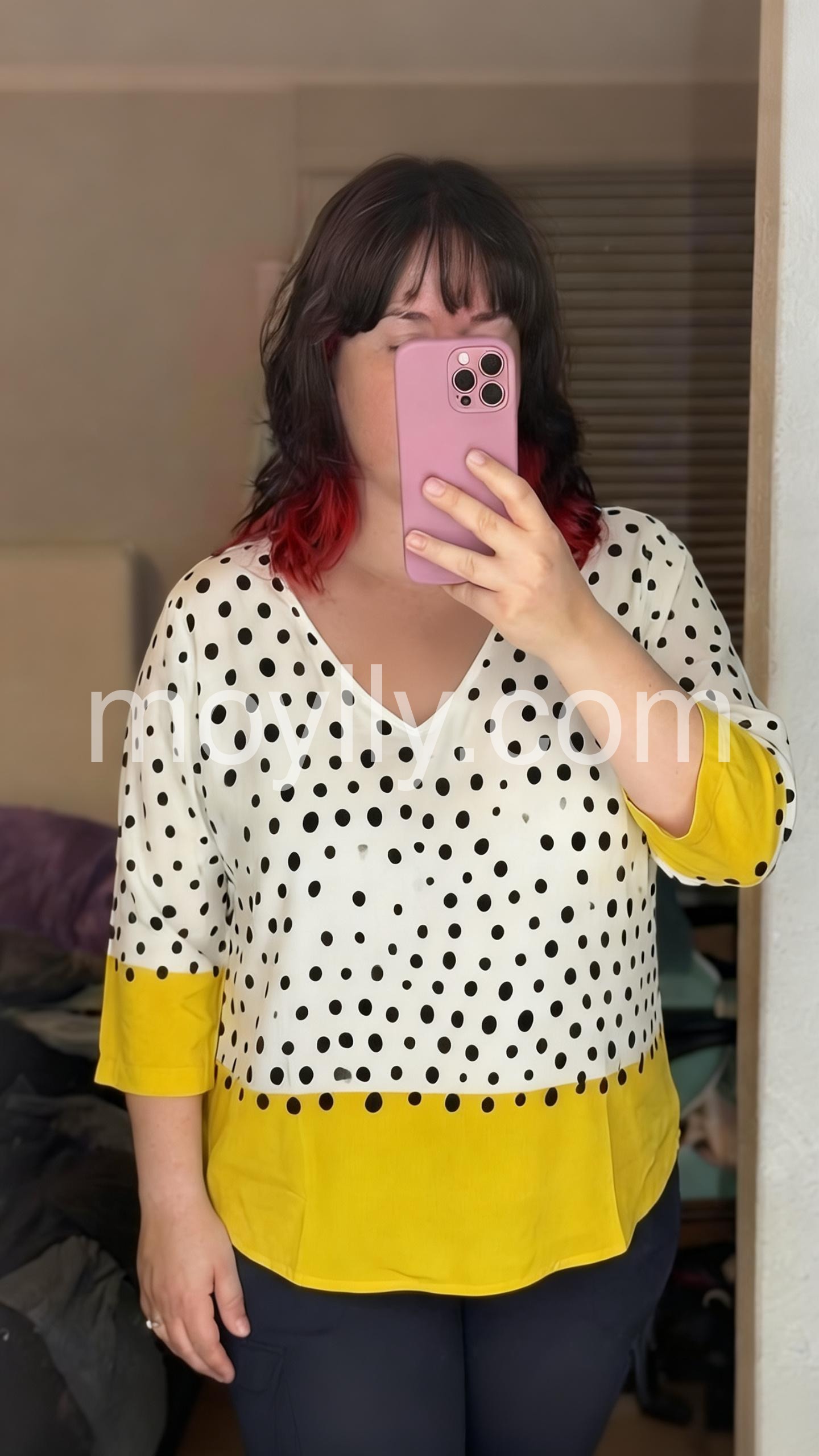 Such a fun and happy top! The bright yellow really pops and brings a smile to my face. The fit is true to size. I ordered a medium and it fits nicely without being too baggy.