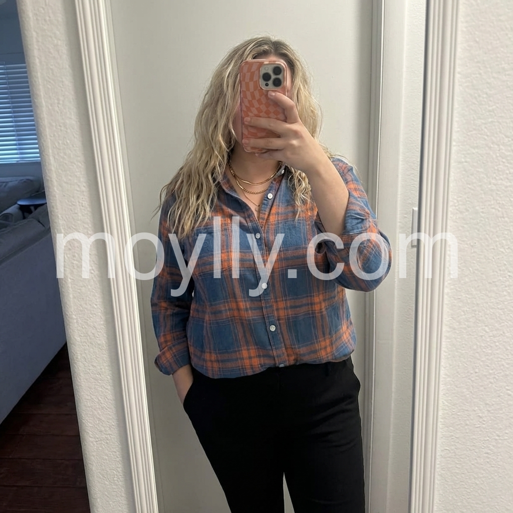 I absolutely love this plaid shirt! The colors are so vibrant and flattering, and the fit feels relaxed yet stylish. The button-down design gives it a classic look, and I can easily dress it up with jeans or wear it casually for everyday outings. The fabric also looks breathable and comfortable, which makes it perfect for all-day wear.