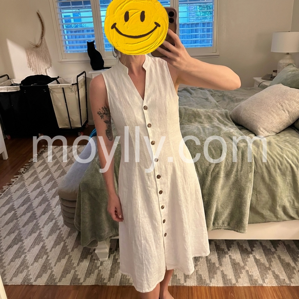 Absolutely love this dress! The material feels like a high-quality linen blend, making it incredibly breathable for hot summer days. The button-down front adds a nice touch of elegance. It fits perfectly and flares out beautifully at the bottom. Highly recommend for a beach vacation or weekend brunch!